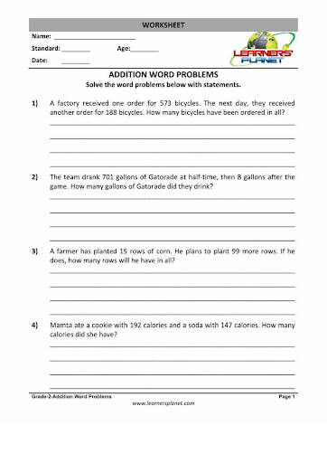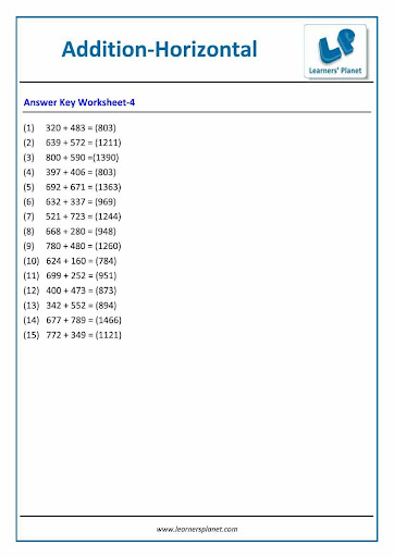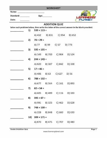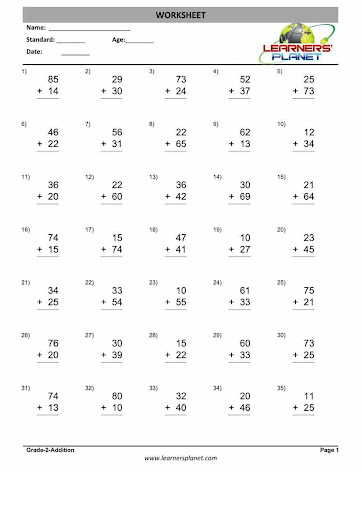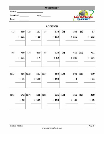 This workbook contains printable worksheets on Addition for Grade 2 Maths students. There are total 26 worksheets with 580+ questions.