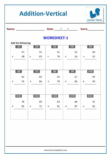 This workbook contains printable worksheets on Addition for Grade 2 Maths students. There are total 25 worksheets with 320+ questions.