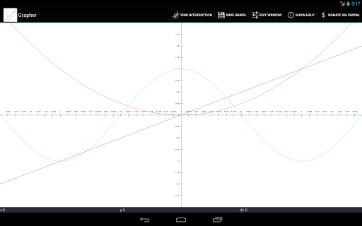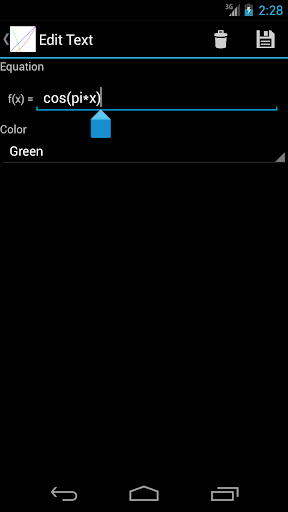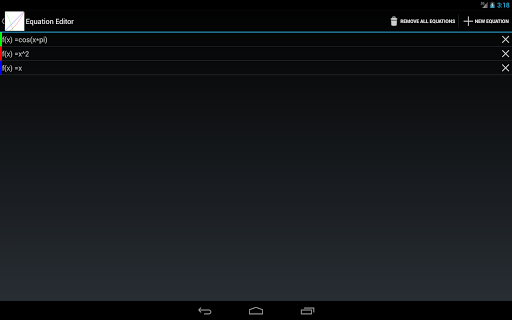 Plot functions and trace their graphs with ease! This is a simple graphing calculator with graphing capabilities similar to TI-83 or TI-89 calculators. To start adding equations, tap the graph! There are no ads, because I hate ads.