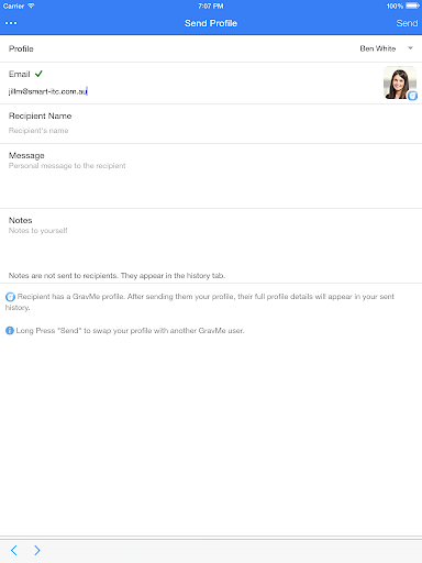 2. The receiving party does not need GravMe installed, making your receiving audience unlimited