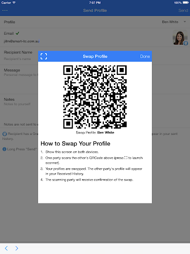- Generate swap codes and QRCodes to use in printed media and presentations to share your details with others (Pro Version Only)