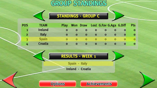 Play with any of the 16 qualified teams or play a quick match against the CPU.