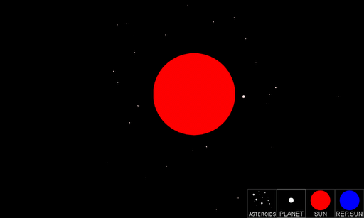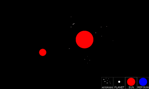 Create a sun, spin some asteroids around it, and watch them collide and become planets!