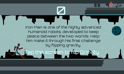 Iron is one of the highly advanced Human robots , developped to keep peace in the world . Help him make it through his challenge by flipping gravity down and up .