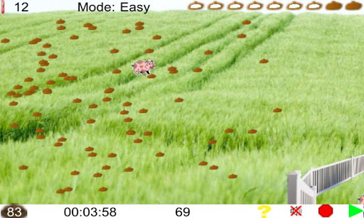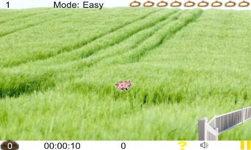 Help! All of the greased pigs have escaped from the pen, and it's your job to get them back. Use your finger to drag them back into the pen, but be careful not to step in any poop. The pigs get faster and faster as you catch them. Each time you miss one, it poops. If you step in too much poop depending on your mode of play, the game is over. The poop is cleared when you catch and return a pig. Every third pig you catch bumps you to the next level. If a pig poops 500 times, the game is over. You can submit your scores locally and globally.