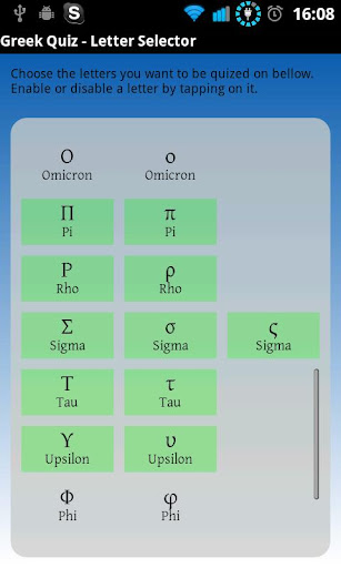 Greek Quiz makes it easy to learn; and even when you know enough; it's also a quick and easy tool to run through the alphabet to keep your memory tip top!