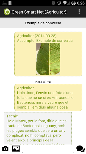 A més d’introduir aquestes dades, Green Smart Net també permet a l’agricultor enviar comentaris o inclús fotografies al seu tècnic per tal de facilitar al màxim la comunicació entre ells i optimitzar el rendiment de les seves finques. L’agricultor i el tècnic poden tenir converses amb altres agricultors i tècnics alhora, per el que permetrà als tècnics enviar avisos als agricultors que ell consideri oportú indicant, per exemple, que s’ha de fer algun tipus de tractament.