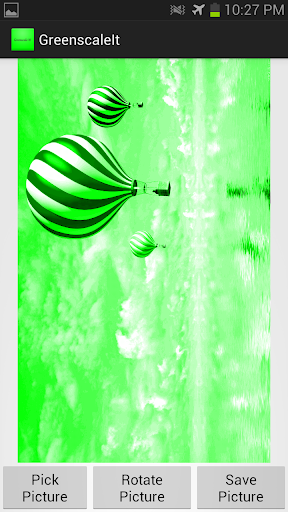 A very easy to use app that allows you to pick an image from your gallery, rotate the image however you'd like, and then save that newly transformed greenscale image into it's own Greenscale it folder! Please give it a try and leave any constructive comments you may have.