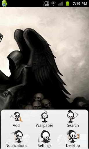 A tribute to Death, there are many wallpapers, icons, banners, and clocks. All for the Reaper, an awesome theme for your phone. Just don't fear the Reaper!