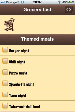 Themed meals; Canned foods; Condiments / Sauces; Baked goods; Baking; Spices & herbs; Snacks; Various groceries; Beverages; Cleaning products; Personal care; Baby stuff; Kitchen; Medicine; Carcinogens; Other stuff; Pets; Office supplies; Fresh vegetables; Fresh fruits; Meat; Seafood; Dairy; Cheese; Refrigerated items; Frozen etc ...
