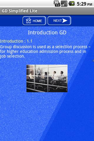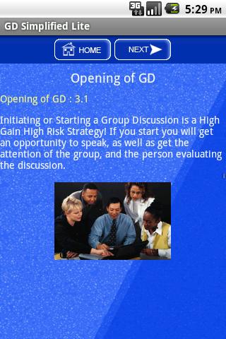 The App starts with the basics: Introduction to Group Discussion – this section covers how the GD’s are conducted and the basic guidelines for a GD.