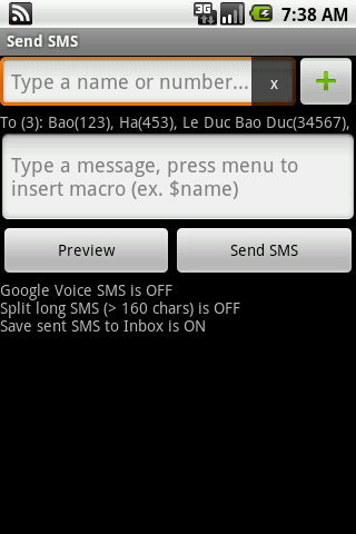 - Schedule to send group SMS (in midnight or anytime, Pro only)