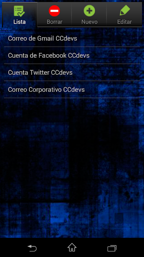 Sencilla aplicación para almacenar datos, olvídese de tener de recordar múltiples cuentas o de usar la misma contraseña para todo, en esta demo completamente operativa puede almacenar todos los datos precisos.