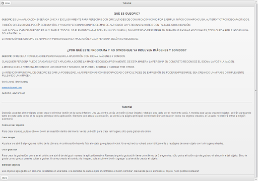 LA INTENCIÓN PRINCIPAL DE GUEOPIC ES DAR LA POSIBILIDAD, A LAS PERSONAS CON DISCAPACIDAD O DIFICULTADES DE EXPRESIÓN, DE PODER EXPRESARSE, SEA CREANDO UNA FRASE O SIMPLEMENTE PULSANDO UNA IMAGEN.