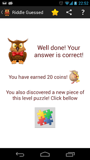 Each level has a puzzle image ready for you to discover. With each guessed riddle, you reveal a new piece of the puzzle. Are you ready for the challenge? :)