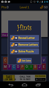 Got Stuck? Use the coins to get hints, like show a letter, remove some letters or solve the puzzle.