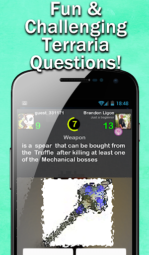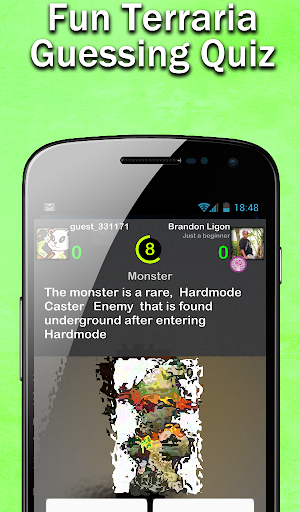 Fan of Terraria? Have you beat the game, killed all the monsters, and collected all the weapons? Guess Terra is a naming game, where you have to guess the correct Terraria characters & weapons before your opponent does. Each game is played live, and against a real person. You will be given seven Terraria pictures. In order to win you have to guess the name correctly, and score more points than your opponent. Guess the Terraria is fun for all ages 13 and up.