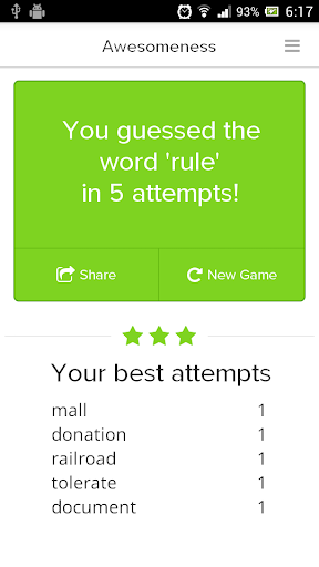 Your smart phone has thought of a word for you! Your task is to guess what that word is. How do you know if your guess is right? Simple. The accuracy of your guess will be shown by green, yellow and red indicators.
