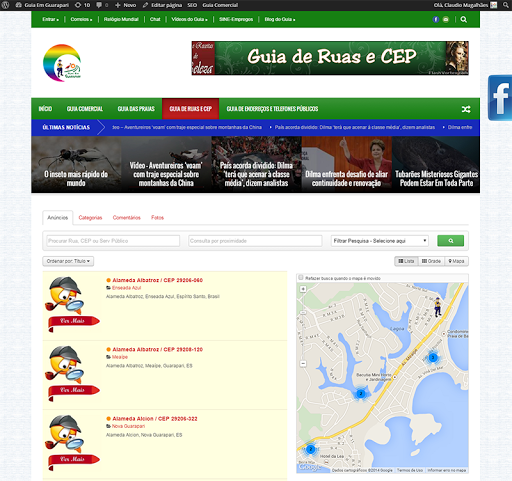 O site guiaemguarapari.com.br foi criado em 2014 por Claudio Magalhães, funcionário dos Correios desde janeiro de 1992, onde já exerceu as funções de Carteiro, Supervisor de Operações, Coordenador e Gerente de Distribuição, o qual, adquiriu experiência suficiente para, através deste site, ajudar as pessoas que procuram informações de lugares, ruas e cep’s no Município de Guarapari.