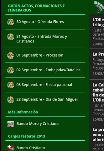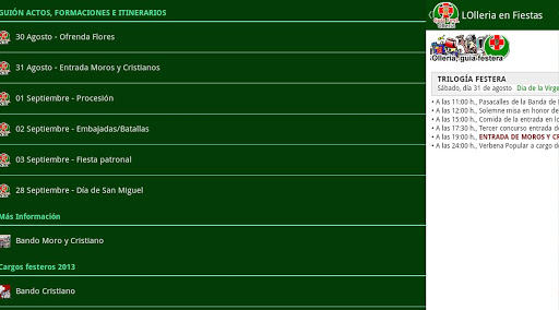 Esta aplicación intenta ser un referente para los festeros de Moros y Cristianos de la Villa de L'Olleria en Valencia, así como para su queridísimo público.