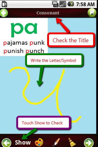 * Use the iPhone/iPod as the Slate to trace the letters & Symbols