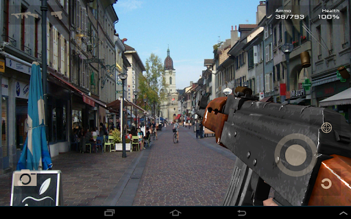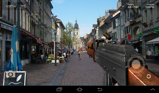 Application will use your camera preview and simulate FPS gun camera game where you can shoot real targets and save gun previews to gallery.