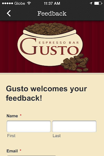 Gusto Espresso Bar mobile app allows you to book your reservation on your mobile phones or tablets. You check our menu and give us your feedback. You can also share you experience with us by sending us your photos. Avail our special offers by using our loyalty and coupon tab.