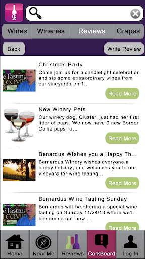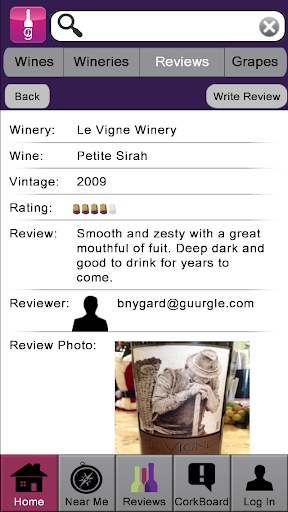 Sip, review, share, and discover with the Guurgle mobile app! You can discover thousands of wines being enjoyed by wine-lovers around the world, from anywhere. Write or read reviews for your favorites, discover new wines and wineries, and find tasting rooms close to you, discover special events via our Corkboard, all through your mobile phone. We've worked hard to make sure that thousands of wines and wineries are already in our extensive database, and with your help it will grow exponentially.
