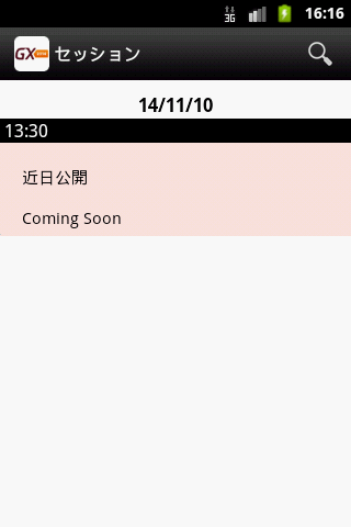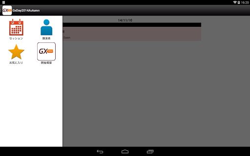 2014年11月10日(月)にジェネクサス・ジャパン株式会社が開催する「GeneXus Day 2014 Autumn」の開催概要やセッションスケジュール、講演者情報を確認できるアプリケーションです。