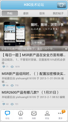 本软件是H3C技术论坛管理团队开发制作的一款手机端论坛APP,通过本手机客户端,您可以随时随地的浏览H3C论坛版块内容、发帖、回帖、收发站内信等基本的社区操作,还可以及时了解H3C的最新资讯,更能体验拍照上传、定位交友、微博共享等个性化服务。