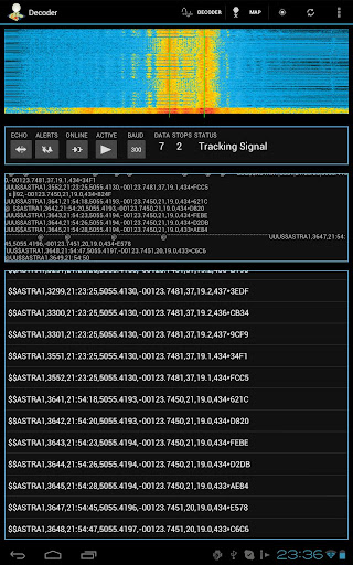Connecting a SSB radio to the audio in of your device will allow for payloads transmitting RTTY to be decoded and displayed on the map. The decoded data is uploaded where it can be also viewed at http://spacenear.us/tracker/ along with data from other listeners. Positions from other listeners are also downloaded so that balloons can be tracked without being able to receive the radio signals. When enabled, the location of the user can also be uploaded and displayed on the online map.