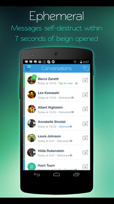 HASH是一款设计精美的私密短信应用,你的短信和图片消息将会通过加密的方式发送给他人,并且通过HASH打开的短信是不会被任何其他软件跟踪的,出于隐私保护,在HASH中截屏功能也是无法使用的。