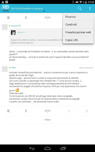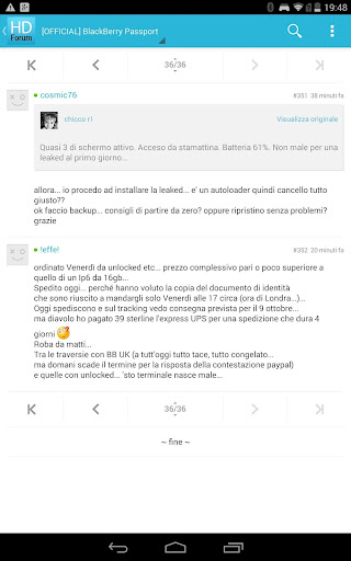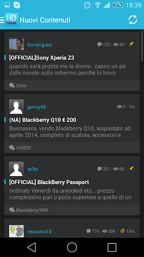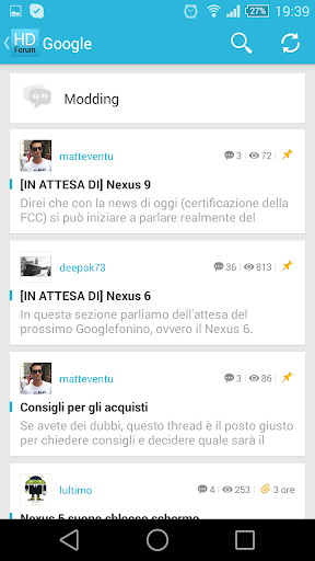 - accesso rapido alle ultime discussioni o a tutti gli argomenti