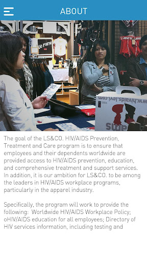 The goal of the LS&Co. Employee HIV/AIDS Program is to ensure that employees and their dependents worldwide are provided access to HIV and AIDS prevention, education, and comprehensive treatment and support services.