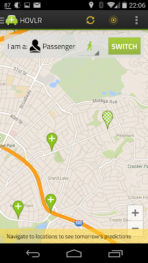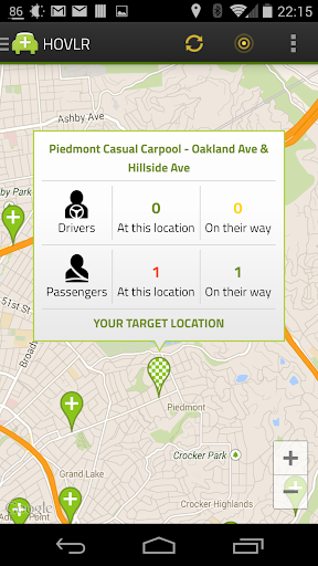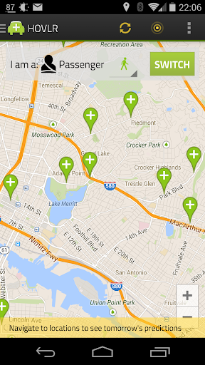 Does this scenario look familiar? You are trying to get into San Francisco using casual carpool, but, at your usual pick-up location, there are 4 cars but no passengers. You decide to go to a different location, a few blocks away, just to find 7 passengers waiting but no cars. HOVLR will fix that.