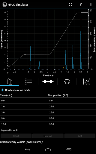 HPLC Simulator is a sophisticated (Ultra) High-Performance Liquid Chromatography simulator for your phone or tablet. Explore a wide range of chromatographic parameters and see their effects on a simulated chromatogram.