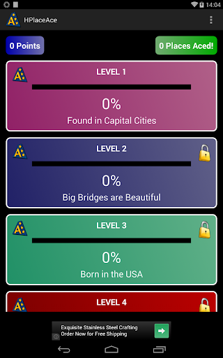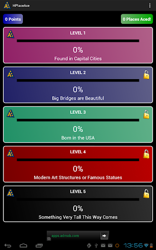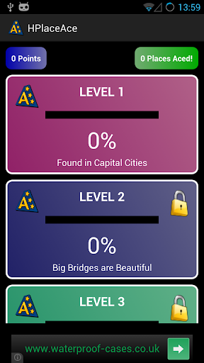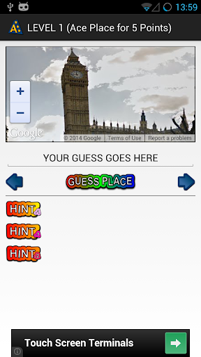 In HPlaceAce there are five levels covering well-known things you might find in capital cities of the world through to sculpture and statues you might in less well-known places. Each level has 10 Places for you to Ace (if you get stuck then some hints are available - but these will reduce your overall score) and if you get a high enough score across the entire game then the Developer will definitely want to congratulate you.