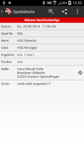 - Details zu einem Spiel (z.B. Datum, Uhrzeit, Halbzeitergebnis, Schiedsrichteransetzung, Hallenanschrift etc.)