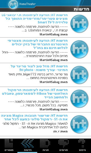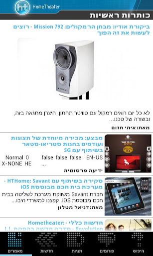 HT is Israel's leading technology center - including both news on gadgets, technology, hometheater and audio. The application offers a daily dose of articles and news and has a large community at its core. Hands on and reviews about HDTVs, gaming, audio, stereo, LCD, plasma as well as cellular, Android and Apple devices. We even have information regarding high end coffee with HTcafe...