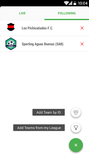 • Following: Here you can add teams that you would like to follow their matches, and these will be automatically added to the view "Live".