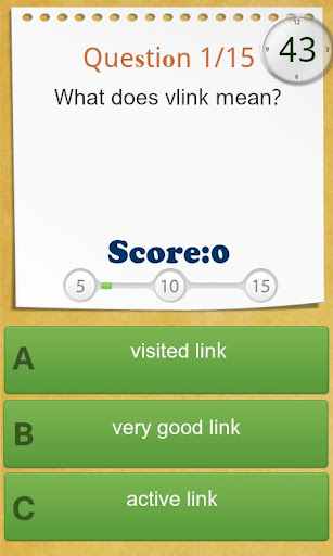 HTML Quiz - Is a powerful application for individuals who want to test their knowledge in HTML. The application consists of six level of difficulty. Until the user reaches the required score the next level according to the current position will not be unlocked. It helps you to focus just on current stage (level). Words are nothing Try the app yourself and rate it. Hope you will enjoy and have benefits of HTML Quiz - of series Word-E Project.