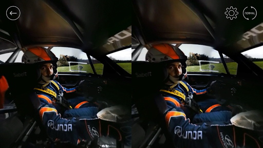 This application is run in not only VR mode, which uses commercial HMD or Google Cardboard, but also general mode. So, everyone can enjoy the driving videos of HYUNDAI i20WRC.