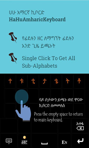 Using HaHuAmharickeyboard (ሀሁ አማርኛ ኪቦርድ) enjoy writing Amharic(አማርኛ) & English on your Android phone.