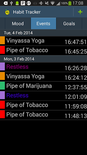 A straightforward app that lists habits and allows the user to record events. Also allows recording weighted descriptors to capture mood.