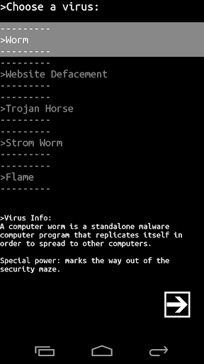 -Store, where you can trade secret documents for money, which you can use to buy new viruses.