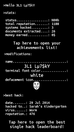 Play as a hacker, hacking to security systems like your local kindergarten and the NSA. Solve mazes and collect