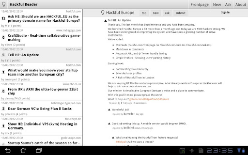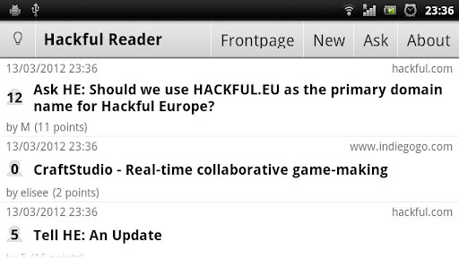 This application is a simple Hackful RSS feed reader, with access to frontpage, new and ask feeds, as well as Hackful post page and Hackful post link.
