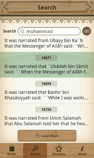 • Find a relevant hadith for any word or phrase using the built-in search features.