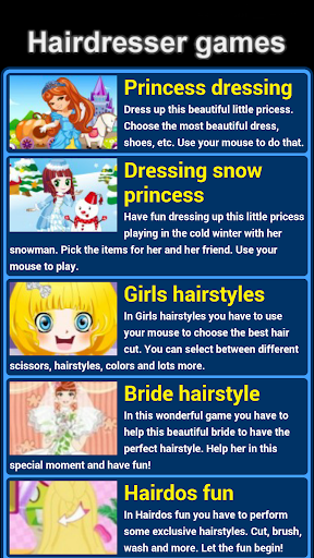 Learn and play at the same time. Access to a selected app game list with all kind of hairdressers games.
