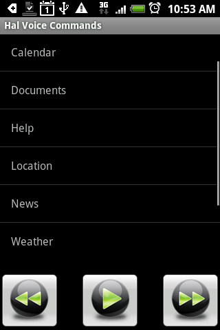 Hal Voice Commands features several capabilities including voice recognition/commands, music player, document reader (eReader), voice synthesis, News, Weather, CallerID and safer driving (beta). It is designed to avoid looking at the phone screen and minimize distractions. This application is voice activated and able to interact with the user by talking. Hal provides several Siri-like features.